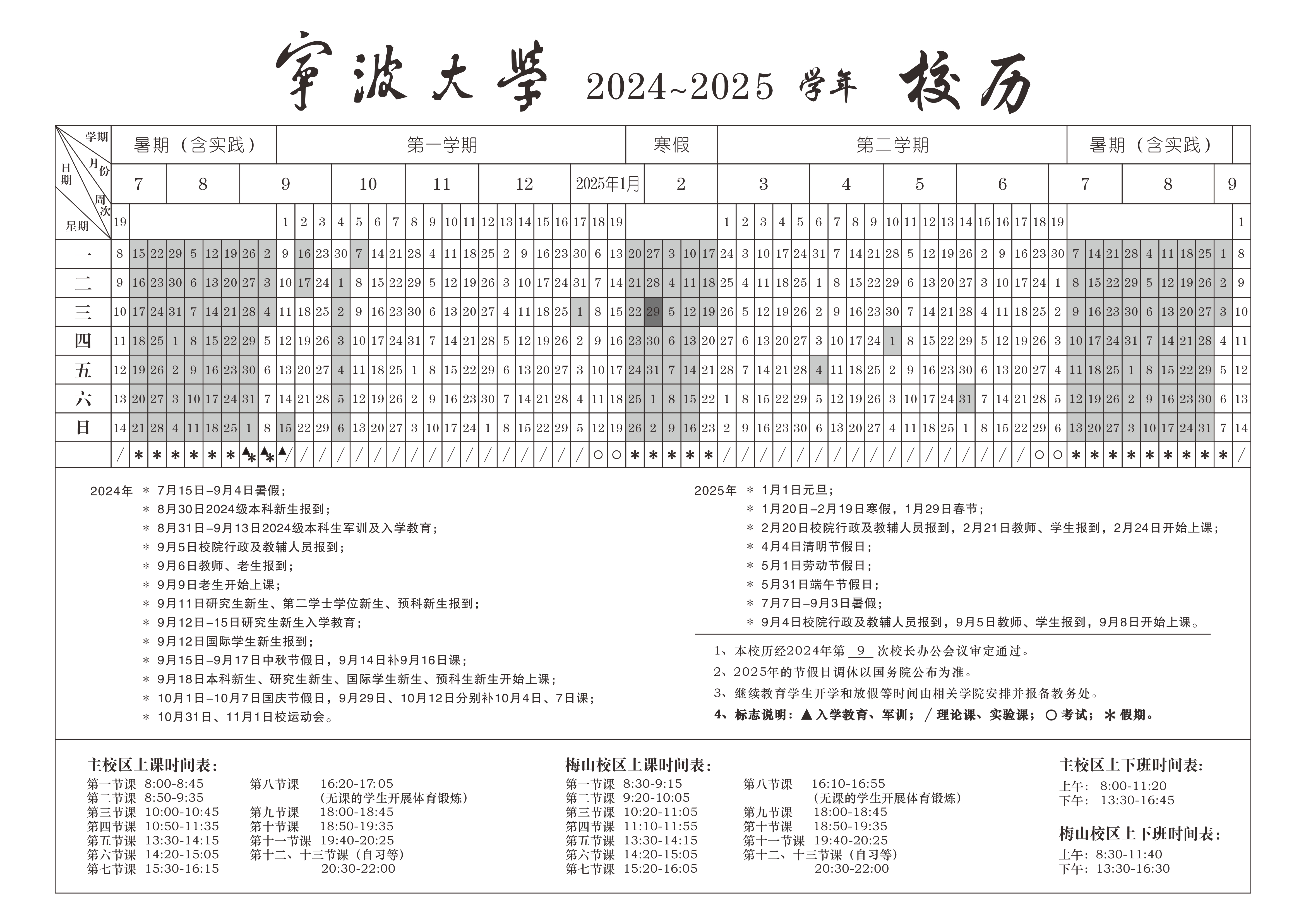 1. 校历