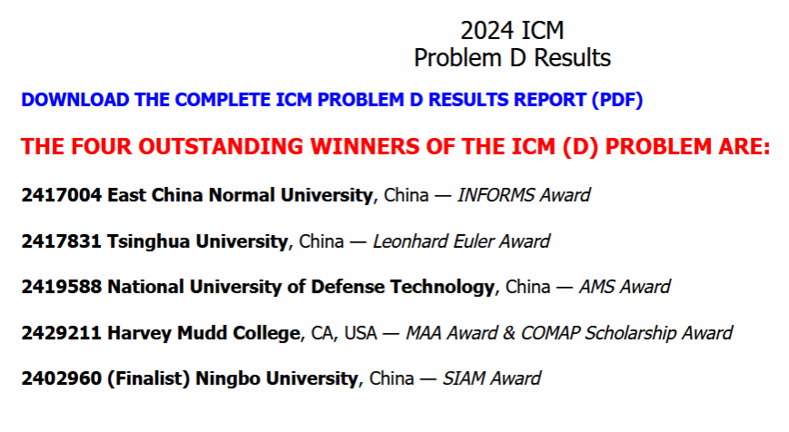 在2024年美国大学生数学建模竞赛(MCM/ICM)非常可喜的成绩。acg港湾