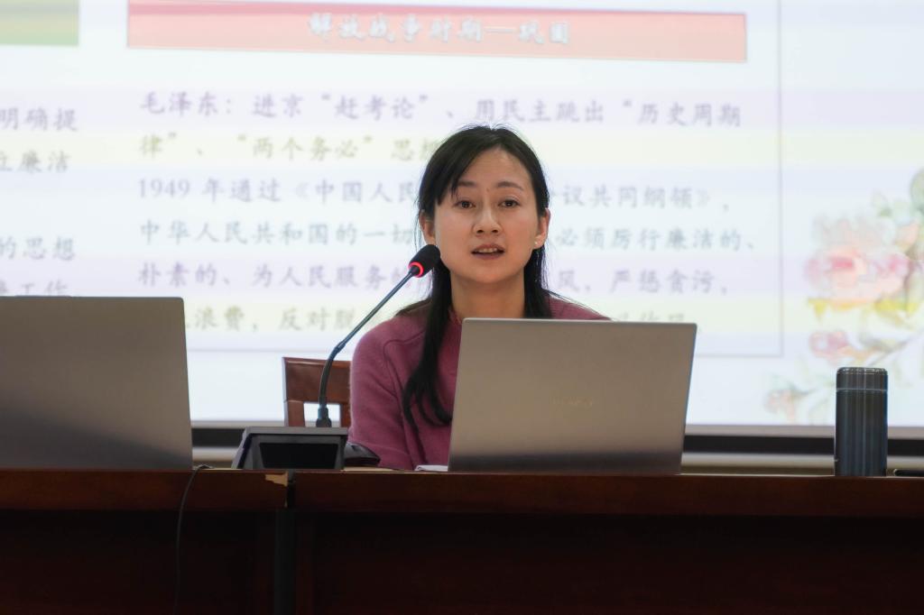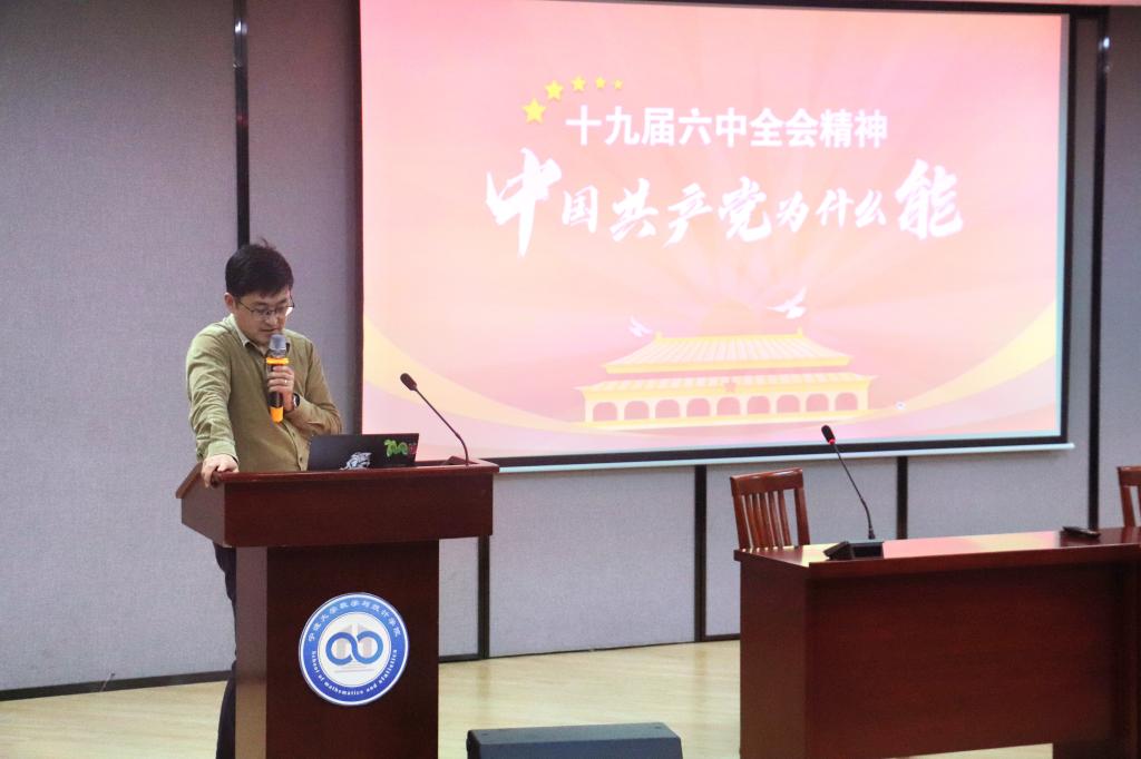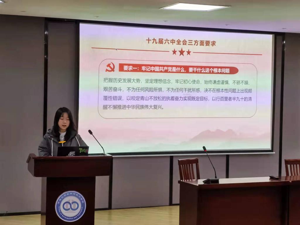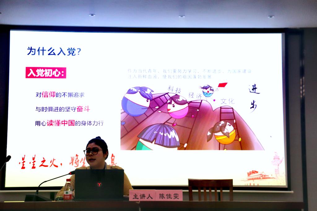 学院党委副书记姜萍首先作了第一讲《全面从严治党——大学生廉洁教育》。姜书记首先阐明了何为廉洁并强调了对大学生进行廉洁教育的必要性和重要意义。在大学生中开展廉洁教育是净化环境,强化责任意识的需要,也是大学生成长成材的需要。她指出,作为新时代的大学生,要争做有理想、有本领、有担当,廉洁自律意识强的大学生,用实际行动践行社会主义核心价值观。在随后几天的党课培训中,学院团委书记陈佳雯,学工办主任张宾分别就历史使命、入党初心、党员的责任与担当、党员的标准与条件等方面进行专题讲座。陈老师的专题讲座《新时代中国共产党的历史使命——谈青年党员的责任与担当》让学员明白了青年党员的入党初心:对信仰的不懈追求,与时俱进的坚守奋斗,用心读懂中国的身体力行;让学员明白信仰的力量,同时也让学员更加坚定自己的入党信念,不忘初心,牢记使命。张老师的讲座《以实际行动争取早日入党---中国共产党党员的条件》以“入党动机”为切入点,围绕树立正确入党动机,党员标准,发展党员程序,以实际行动争取早日入党四个方面展开讲述。他们的讲解使学员们进一步了解了党的基本知识,明确了入党动机,明确了党的宗旨、性质、党员义务和责任,大家纷纷表示将按照党员标准严格要求自己,努力做好本职工作,体现党的先进性,以实际行动争取早日入党。期间,为了让学员们更深刻的感受中国共产党的伟大和抗美援朝胜利的不易,分党校组织学员们共同观看了电影《建党伟业》、《金刚川》,进一步的了解了中国共产党,了解了建国初期的不易。最后,在全党全国上下学习实践十九届六中全会精神的同时,分党校开展了《十九届六中全会宣讲:从百年奋斗历程看中国共产党为什么能》宣讲会,各组学员代表的宣讲,以及张老师最后从党的百年奋斗历史、党的创新理论、党的伟大实践三个维度做出的总结,让全体学员更加清晰地了解了十九届六中全会精神,以更加昂扬姿态迈进新征程。