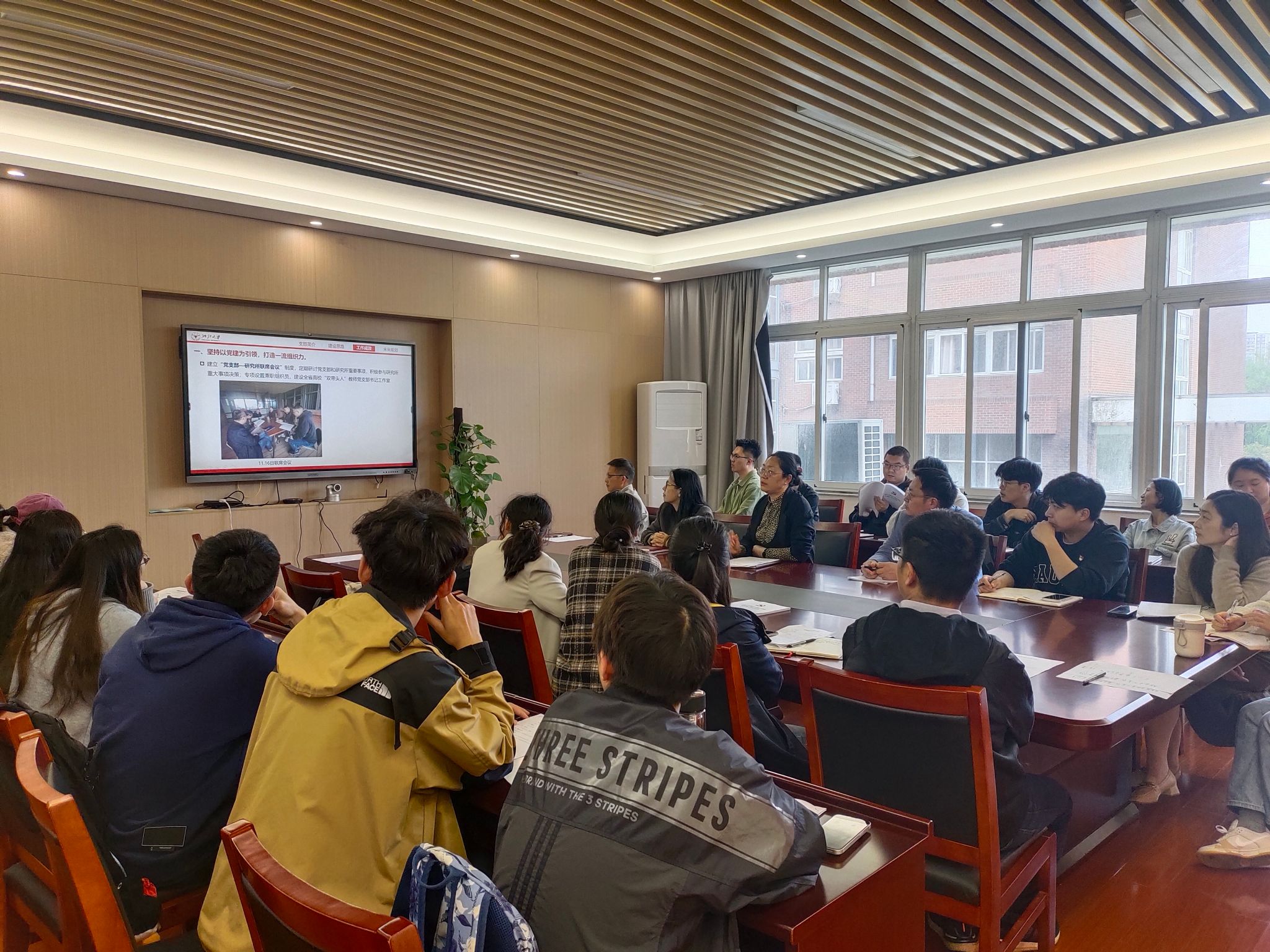 首先,院党委书记强调了党建与业务双融双促的重要性,解答了“为什么融”的问题。其次,分享了其他高校省级“双带头人”工作室、教师样板党支部的建设经验以及在党建与业务双融双促方面的具体做法,形象地回答了“怎么融”的问题。她指出,以教职工党支部为例,党建与业务的融合,要坚持以党建为引领,打造一流组织力;坚持以立德树人为根本,打造一流凝聚力;坚持以高水平科研为驱动,打造一流战斗力;坚持以高质量社会服务为抓手,打造一流服务力;坚持以文化传承为纽带,打造一流感染力。学生支部建设,则应重点围绕“以学铸魂,以学增智,以学正风,以学促干”,加强党建与业务的双融双促。