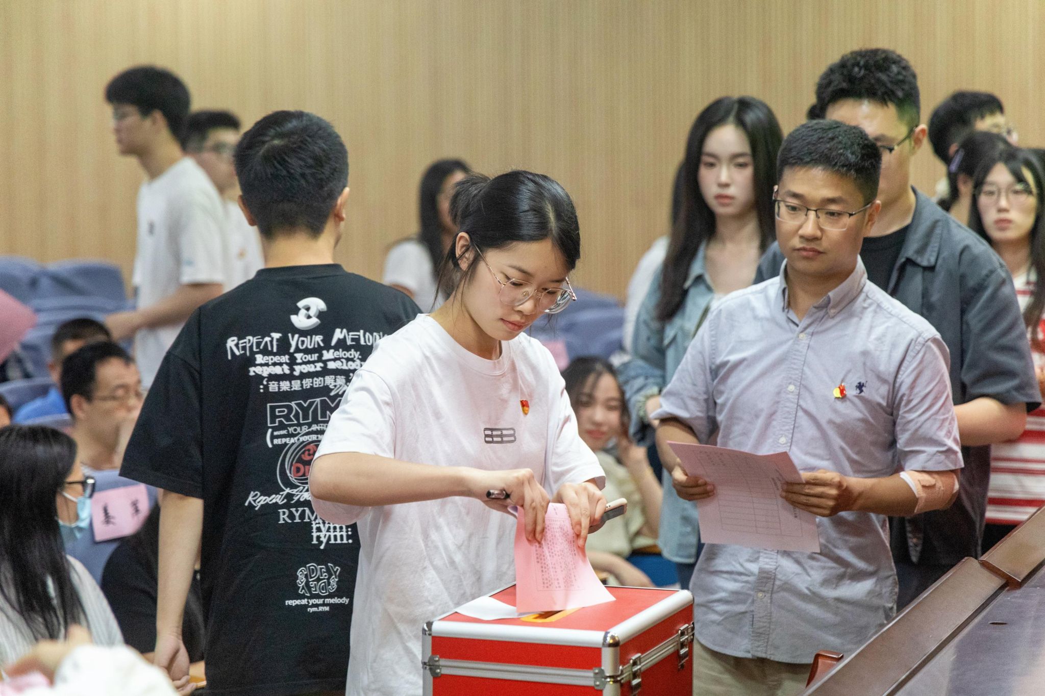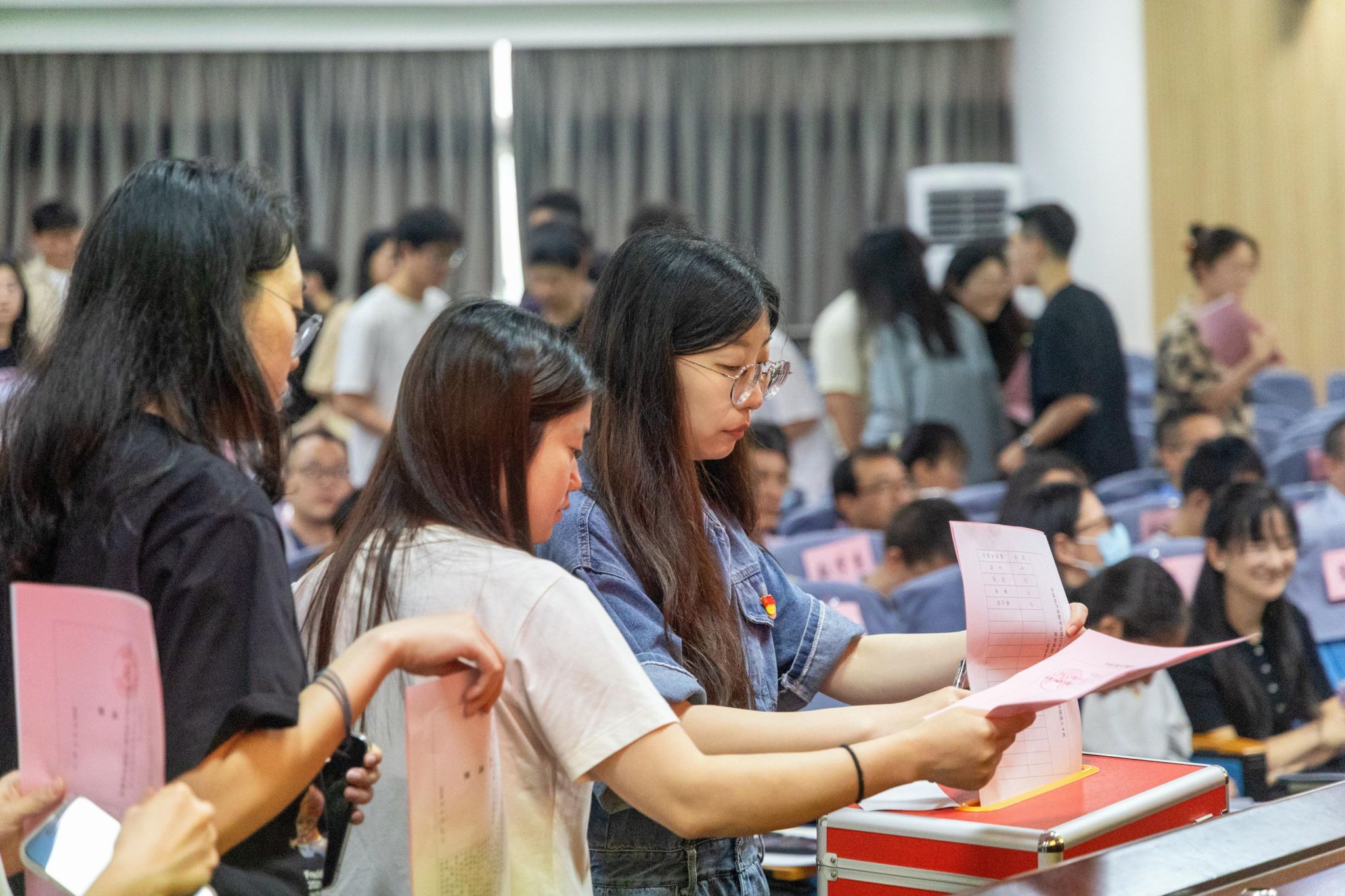 大会通过无记名差额投票的方式选举产生了新一届党委、纪委委员。全晶晶、何洪津、陈传强、姜萍、霍妍等5名同志当选为学院新二届党委委员(按姓氏笔画为序),刘洋、姜萍、蔡江佳等3名同志当选为纪委委员(按姓氏笔画为序)。在党委新一届委员第一次全体委员会议上,霍妍当选为党委书记,姜萍当选为党委副书记。同时,陈传强担任统战委员,何洪津担任青年委员,全晶晶担任组织委员、宣传委员。在纪委新一届委员第一次全体委员会议上,姜萍当选为纪委书记,并对委员进行了分工。