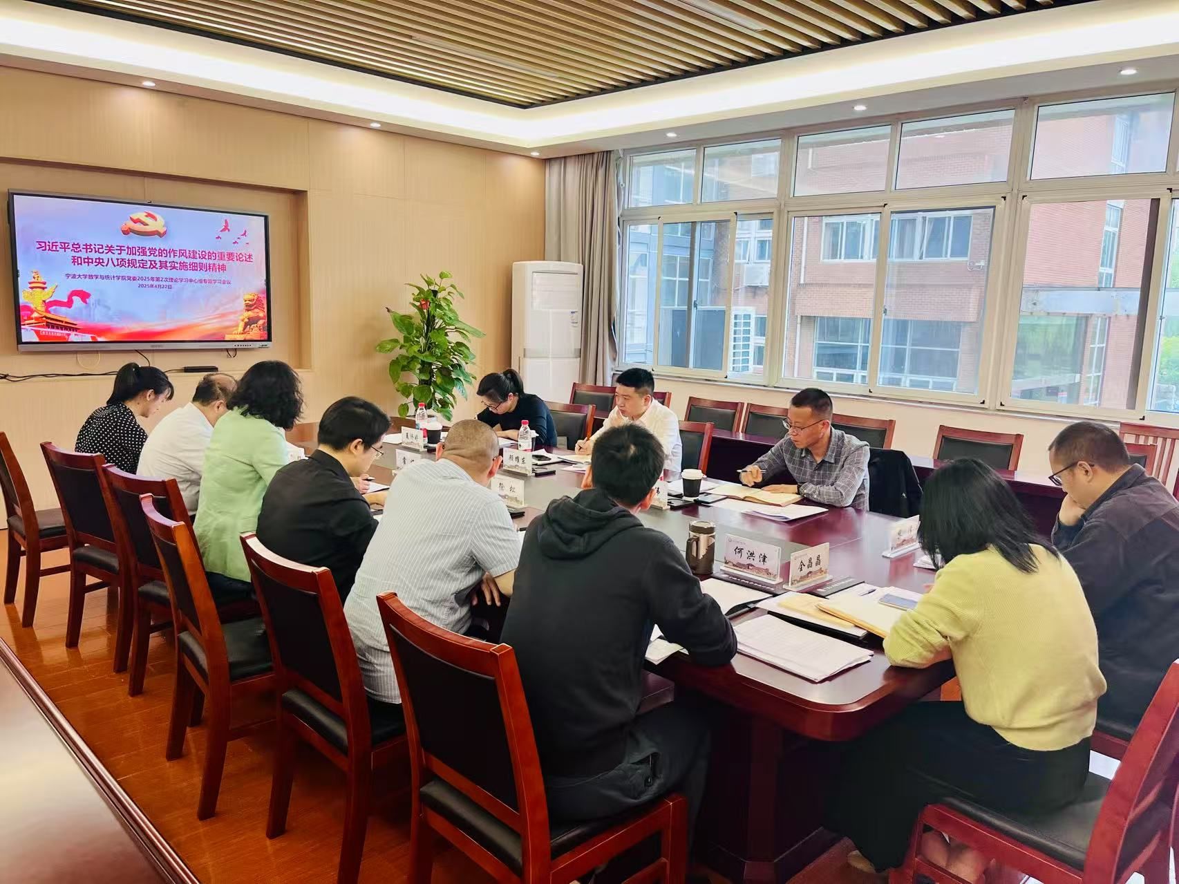 4月22日上午,acg港湾 党委理论学习中心组举行2025年第2次集中学习会,就习近平总书记关于加强党的作风建设的重要论述和中央八项规定及其实施细则精神进行专题学习。院党委书记主持会议,校党委委员、组织部部长顾耀东一行代表校党委巡听旁听,学院党政领导班子全体成员参加会议。