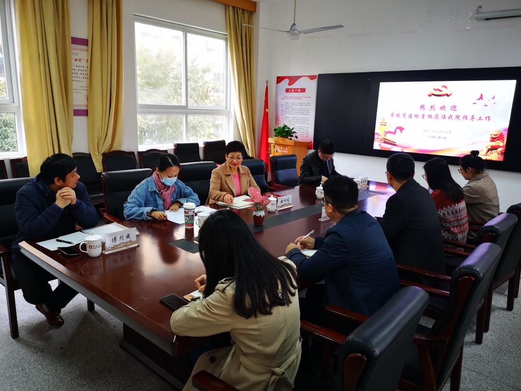 11月25日下午,学校党建检查第二组组长、信息学院党委书记骆巧凤带领检查组一行5人,对我院2020年党建工作进行现场督查。院党委书记、副院长俞金波热情接待了检查组。