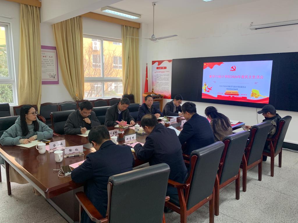 1月4日,学院党委班子在龙赛理科楼116会议室召开2020年民主生活会。会议由党委书记俞金波主持,校党委副书记冯杰出席指导,民主党派代表李茂华、教师代表徐松列席会议。会议紧扣学习贯彻党的十九届五中全会精神主线,聚焦科学谋划“十四五”发展蓝图,巩固深化“不忘初心、牢记使命”主题教育成果主题,班子和班子成员分别对照问题检视开展批评和自我批评。