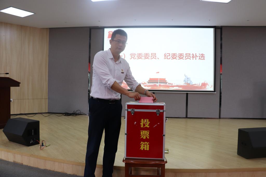 会上,张宾同志介绍了选举办法与注意事项,随后会议采取无记名投票方式进行,与会党员同志经过慎重思考、认真填写选票,并在监票人的监督下投出了自己神圣的一票。经现场回收、统计,当场宣布了陈传强同志当选党委委员,蔡江佳同志当选纪委委员。