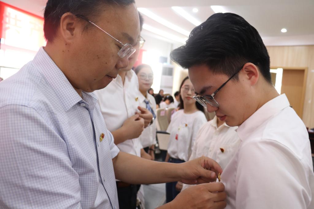 一名党员一面旗帜,一枚党徽一份责任。大会现场,老党员代表为9名新发展党员代表佩戴党徽。宁波市教育系统先进基层党组织研究生党支部李超凡同志带领全体党员宣誓,重温入党誓词。一句句誓词掷地有声、动人心魄,坚定了共产党员的初心使命,激励着全体党员保持奋斗精神,继续在学院发展建设中争当模范。进一步增强了党员的身份认同感、组织归属感和集体荣誉感。