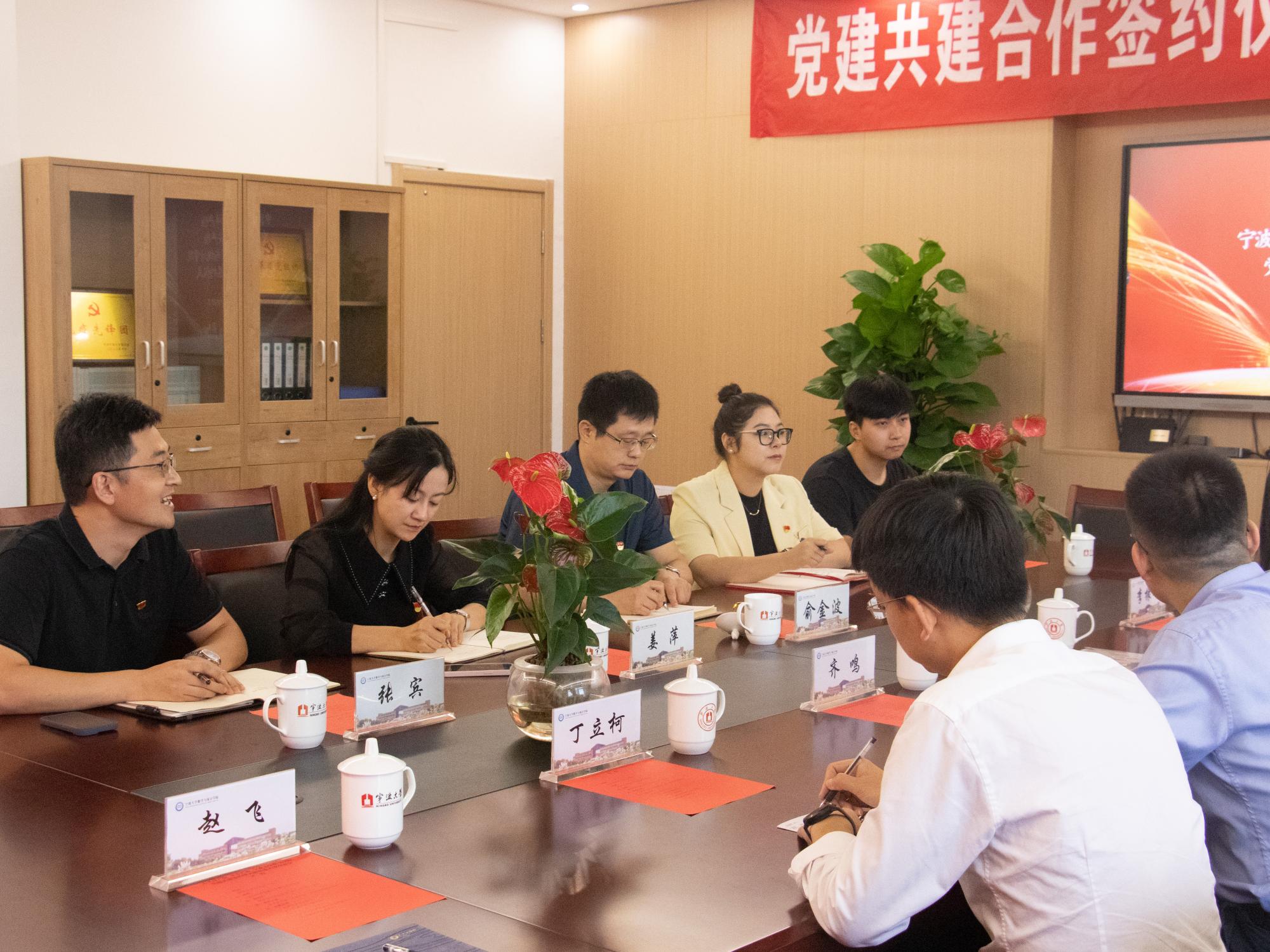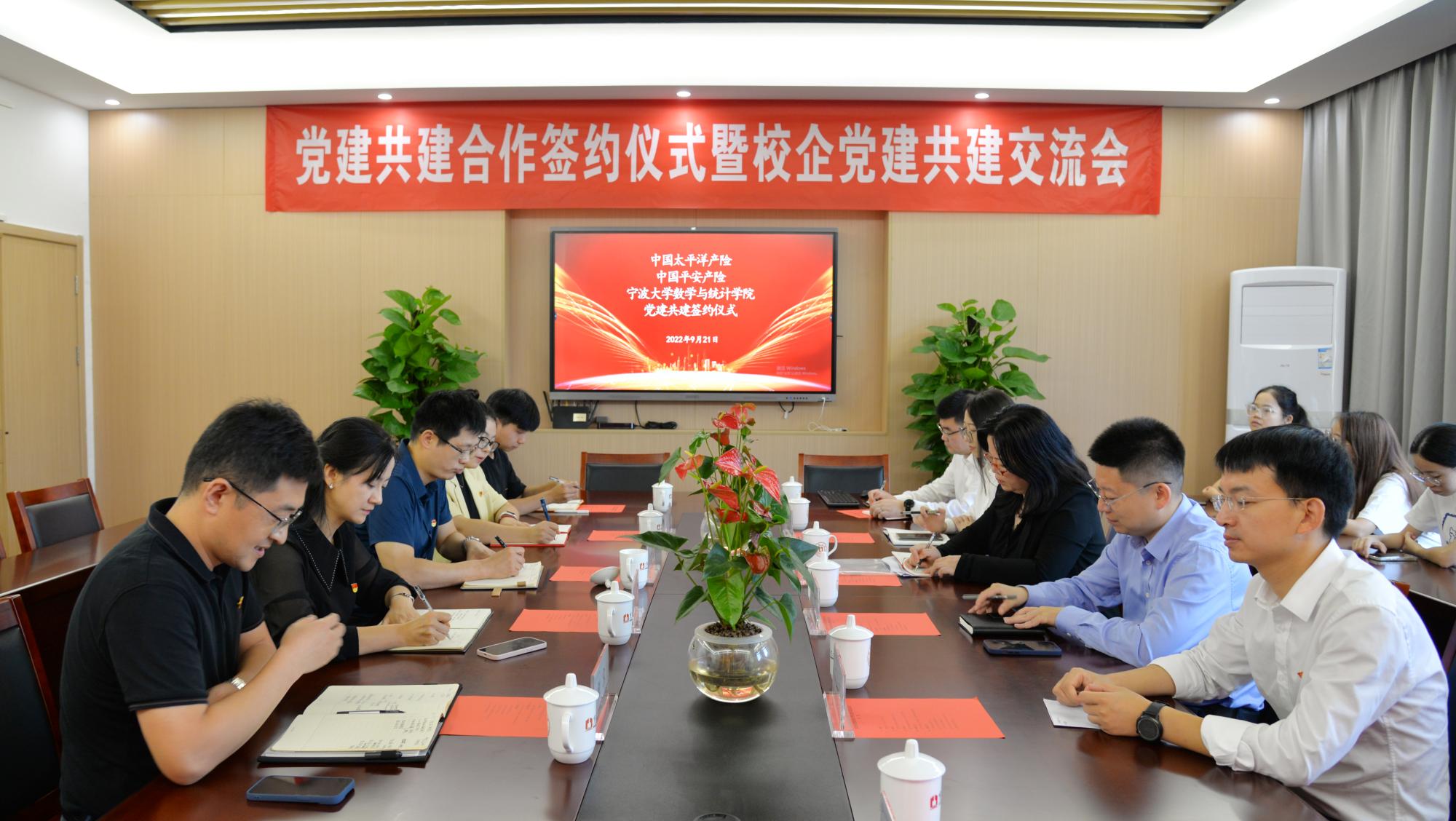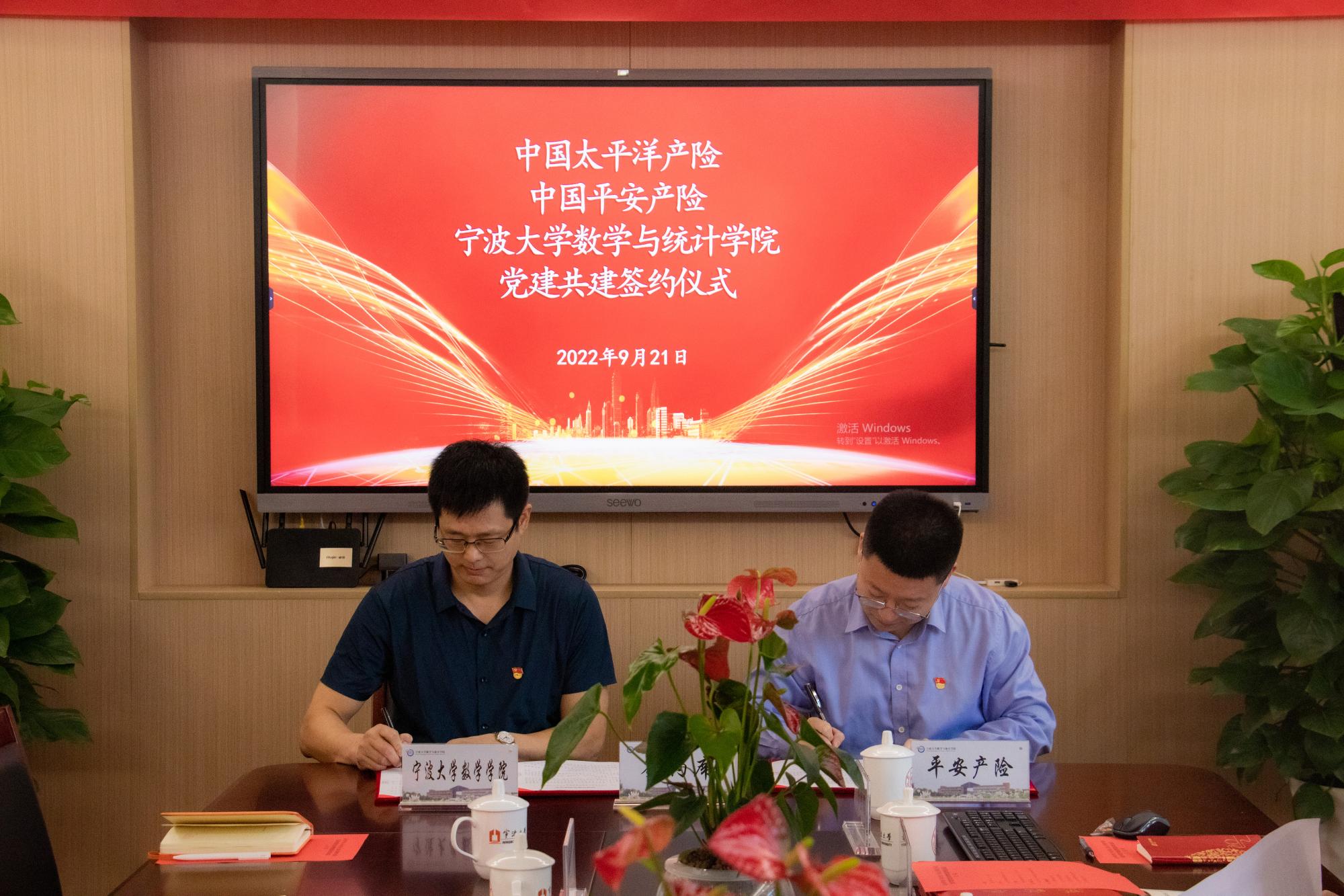 为全面贯彻习近平新时代中国特色社会主义思想,深入落实新时代党的建设总要求,激发高校基层党组织活力,有效整合校企党建资源优势,促使双方在合作中优势互补、共同发展、实现双赢,9月21日上午,我院和太平洋产险、平安产险党建共建签约仪式暨党建共建交流会在包玉书科学楼9号楼218会议室隆重举行。中国太平洋产险宁波分公司党建工作部负责人汪蕾,中国平安产险宁波分公司党委委员、党办主任齐鸣,acg港湾