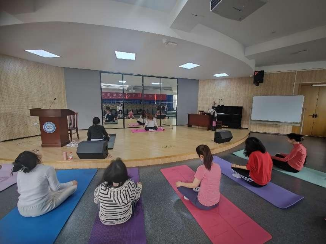 为丰富学院女教工业余文化生活,促进女教工身心健康,2024年春,acg港湾 分工会特邀专业瑜伽教练,利用每周四午休时间,开展女教工瑜伽课堂。本学期至今,共计上课16次。
