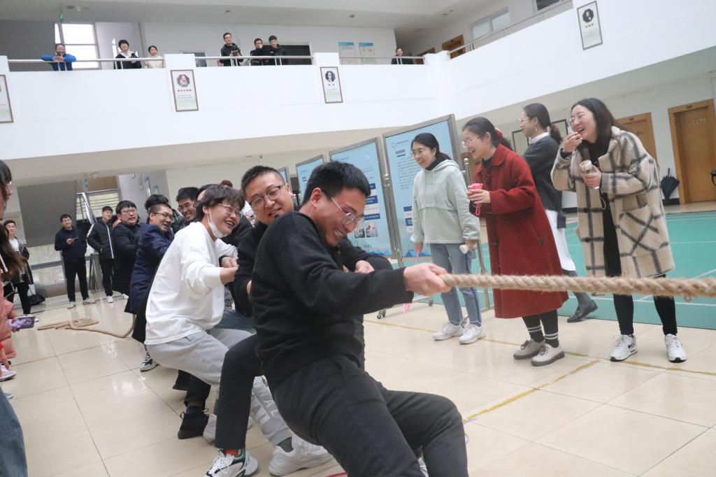 活动包含羽毛球、乒乓球、拔河及趣味活动,给师生们提供了一个互相交流、展现自我的平台,增强了全体师生的凝聚力,丰富大家的课余生活。经过上周六预赛的选拔,晋级师生在半决赛和决赛时使出了浑身解数。羽毛球和乒乓球场地的师生对打,吸引了大量的同学观看,时不时传来热烈的掌声和呼喊声。拔河比赛中,参赛班级为集体荣誉顽强拼搏,展现了团结一致的良好精神风貌。