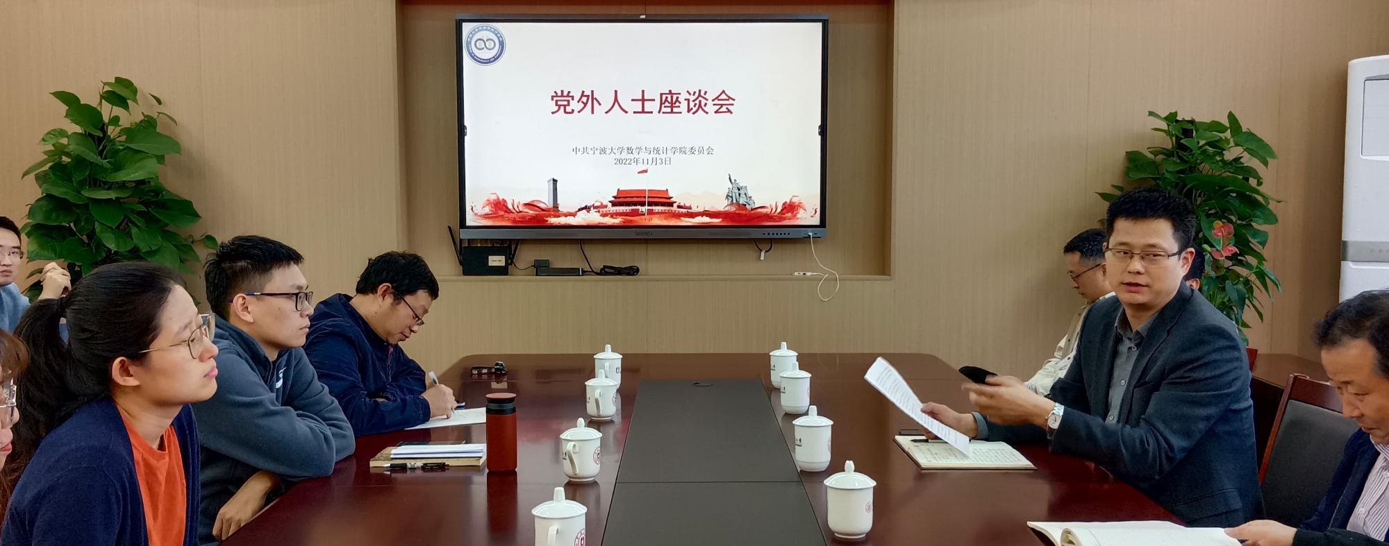 11月3日,学院党委召开党外人士座谈会,深入学习贯彻二十大精神,动员各民主党派和无党派人士切实把思想和行动统一到中共二十大精神上来,紧紧围绕新时代新征程中国共产党的使命任务,为书写好中国式现代化的宁大答卷汇聚磅礴力量。党委书记俞金波出席会议并讲话。