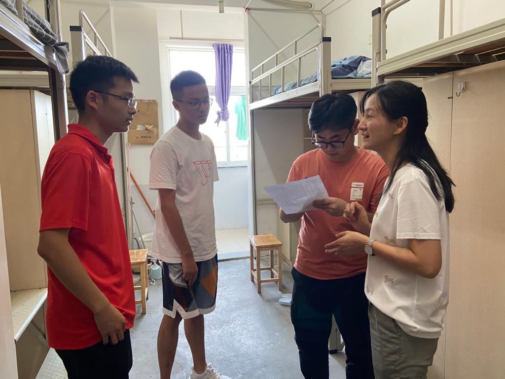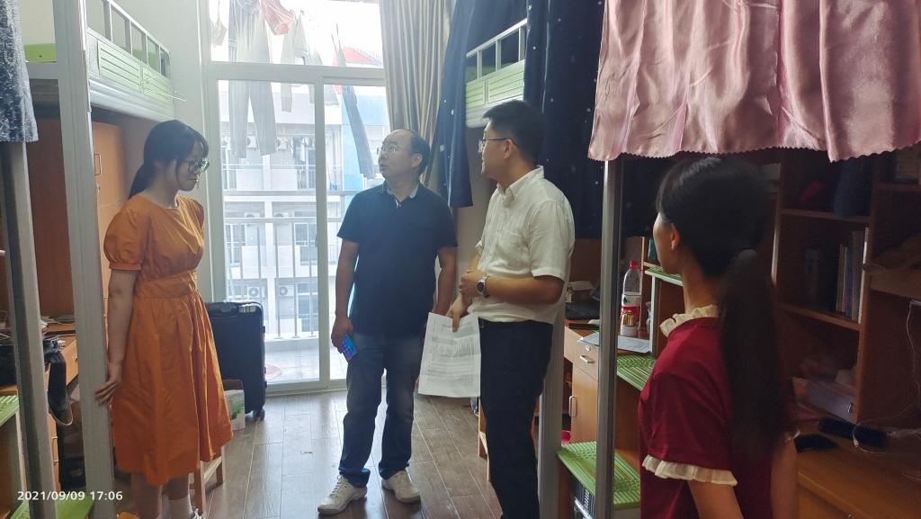 党委副书记姜萍、副院长胡良根和辅导员分别前往甬江公寓走访本科生和研究生新生宿舍,了解新生的入住情况,并给予他们温暖的关怀和真切的鼓励。