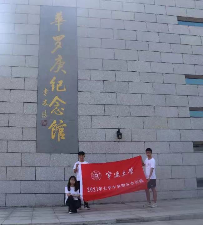 实践队员应博宇在华罗庚纪念馆门口拍摄宣传视频。
