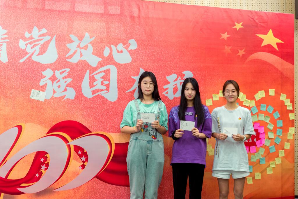 首先,同学们齐唱团歌,感受到了歌词中的朝气蓬勃,身为团员的自豪和骄傲在每一位同学的血液中翻涌。随后,全体团员学习习总书记“七一讲话”精神,深入了解我们党筚路蓝缕、栉风沐雨的百年历史进程,以及党奠基立业、铸就辉煌的百年奋斗成就,热血的话语在每一位同学的耳边回荡。
