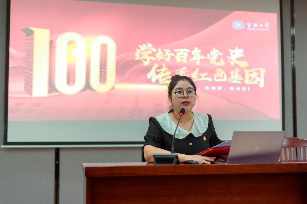 在“我的第一堂团课”环节,学院团委副书记陈佳雯老师讲述了宁大青年的红色故事。心怀赤诚的宁大青年在跨越时空的90后对话中追寻红色风骨;智慧勇毅的宁大青年奋力开拓社会主义的伟大征程中追寻红色基因;肩负时代使命的宁大青年在全面推进乡村振兴的时代大舞台上展现红色担当。鼓励同学们接过奋斗的红色旗帜,做一名奋进拼搏的宁大青年。