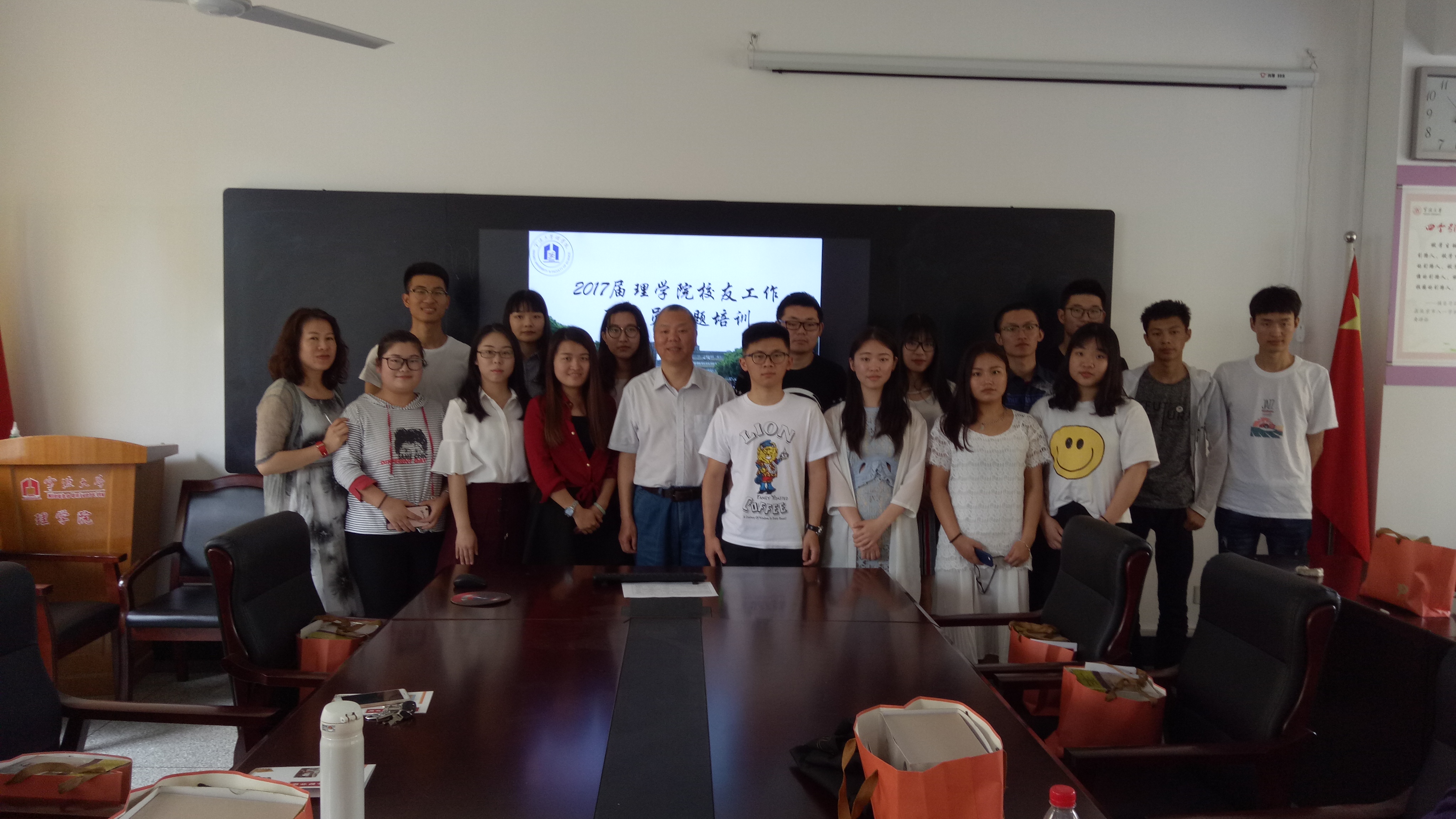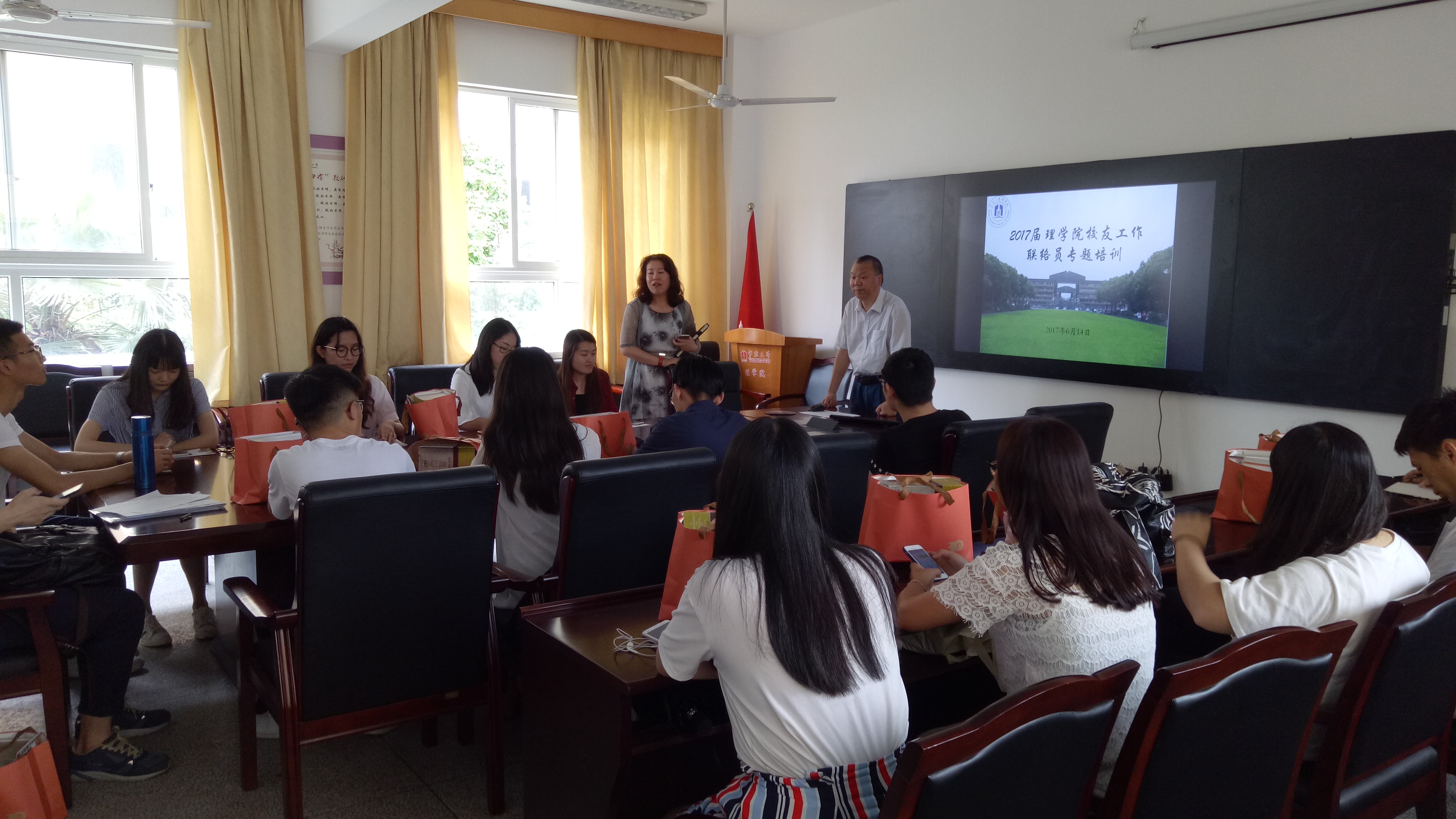 校友会理学院分会常务副会长、黄旭升副院长给2017届九个毕业班共16名校友联络员做了此次培训。