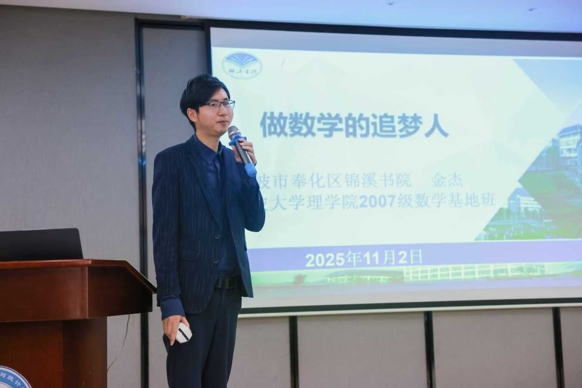 聘任仪式后,首届校友导师、锦溪书院党委副书记、07级校友金杰以“做数学的追梦人”为题,与学子面对面交流。金杰剖析数学专业优势,为有志教育者点亮明灯,提供备考建议。他以“遇见光、追逐光、成为光”描绘教师成长路径,阐述优秀教师能力,分享考编策略与晋升路径,强调团队协作重要性,并鼓励学弟学妹积极投身教育事业或读研深造。