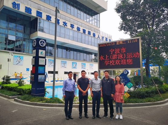 一行拜访了宁波市水上(游泳)运动学校校长--90级校友施飞存。