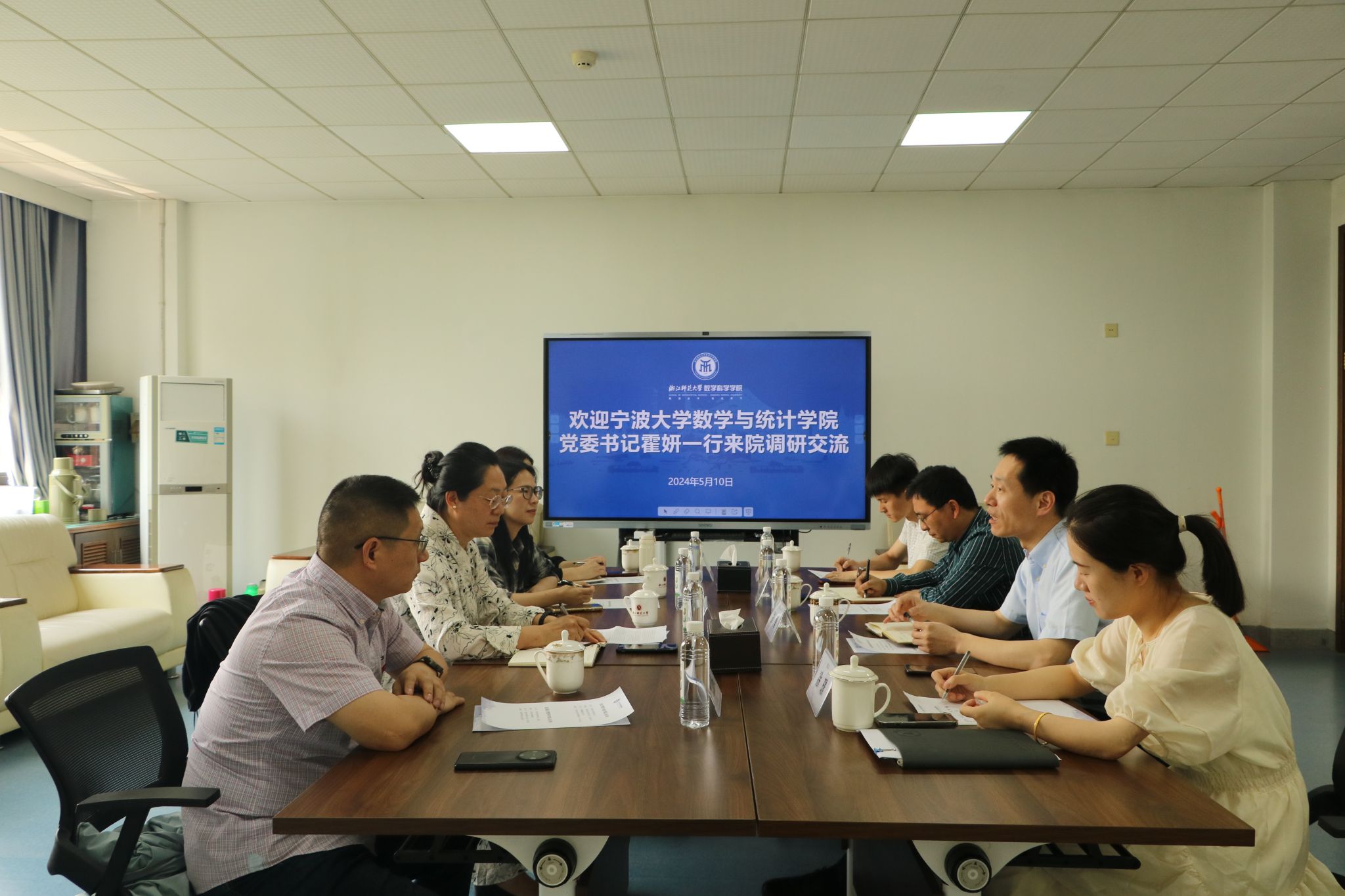 为了进一步推进党建与业务的双融双促,5月10日,学院党委书记、党委委员、党建辅导员及数学建模团队负责人一行赴浙江师范大学数学科学学院开展调研交流。数学科学学院党委书记张勇、副院长潜陈印等接待我院调研组。