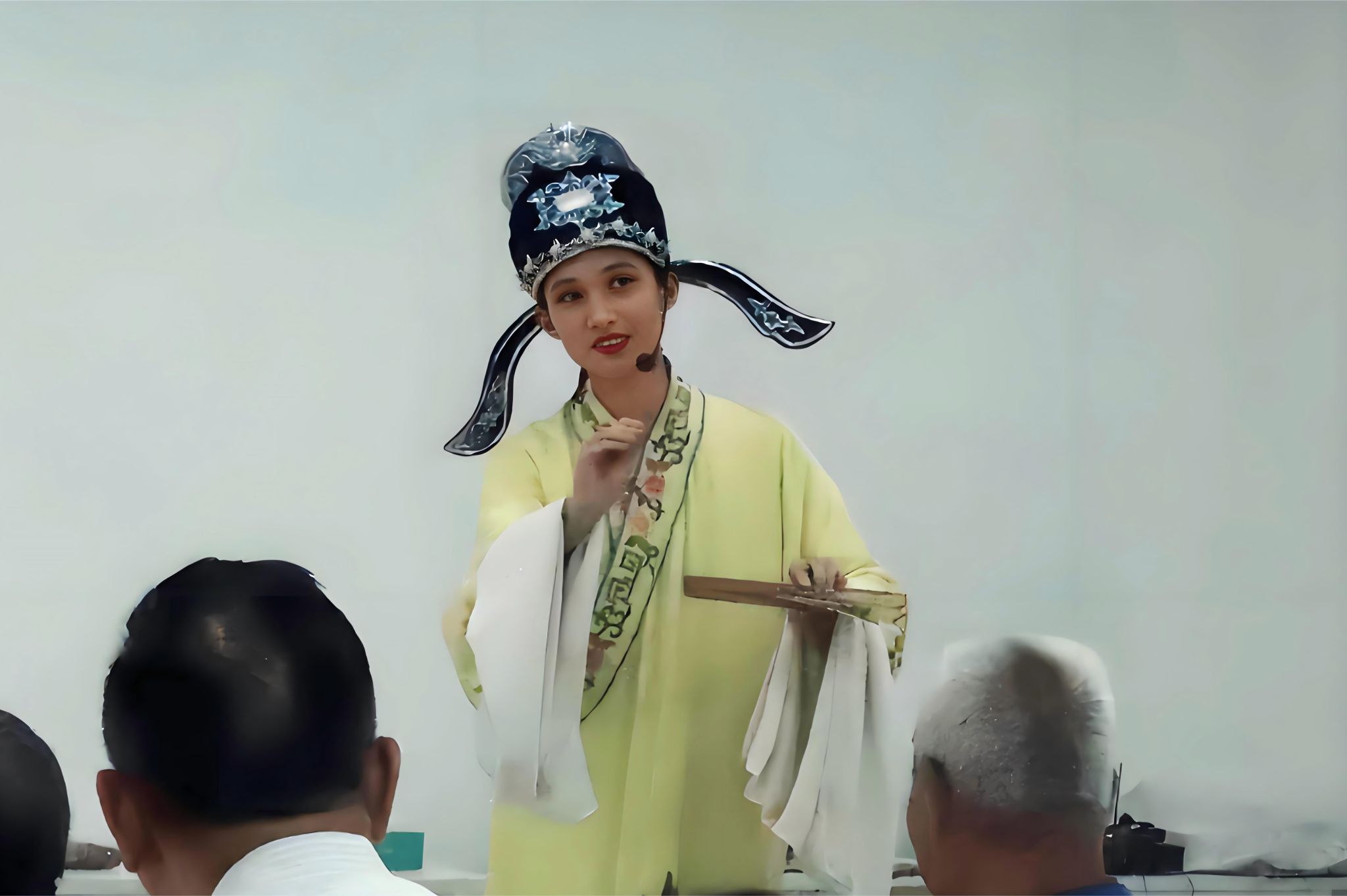 游戏环节结束后,宁大小“数”苗志愿者们为老年朋友们带来了一场精彩的越剧表演。宁大学子身着精美的传统戏曲服装,缓缓走上舞台,扇开扇合,扇尖指点,轻摇慢摆,每一段唱腔,每一个眼神,都触动着老人的心弦。精湛的表演赢得了老人们的热烈掌声,搭建起两代人心灵的桥梁,让传统文化焕发新生。