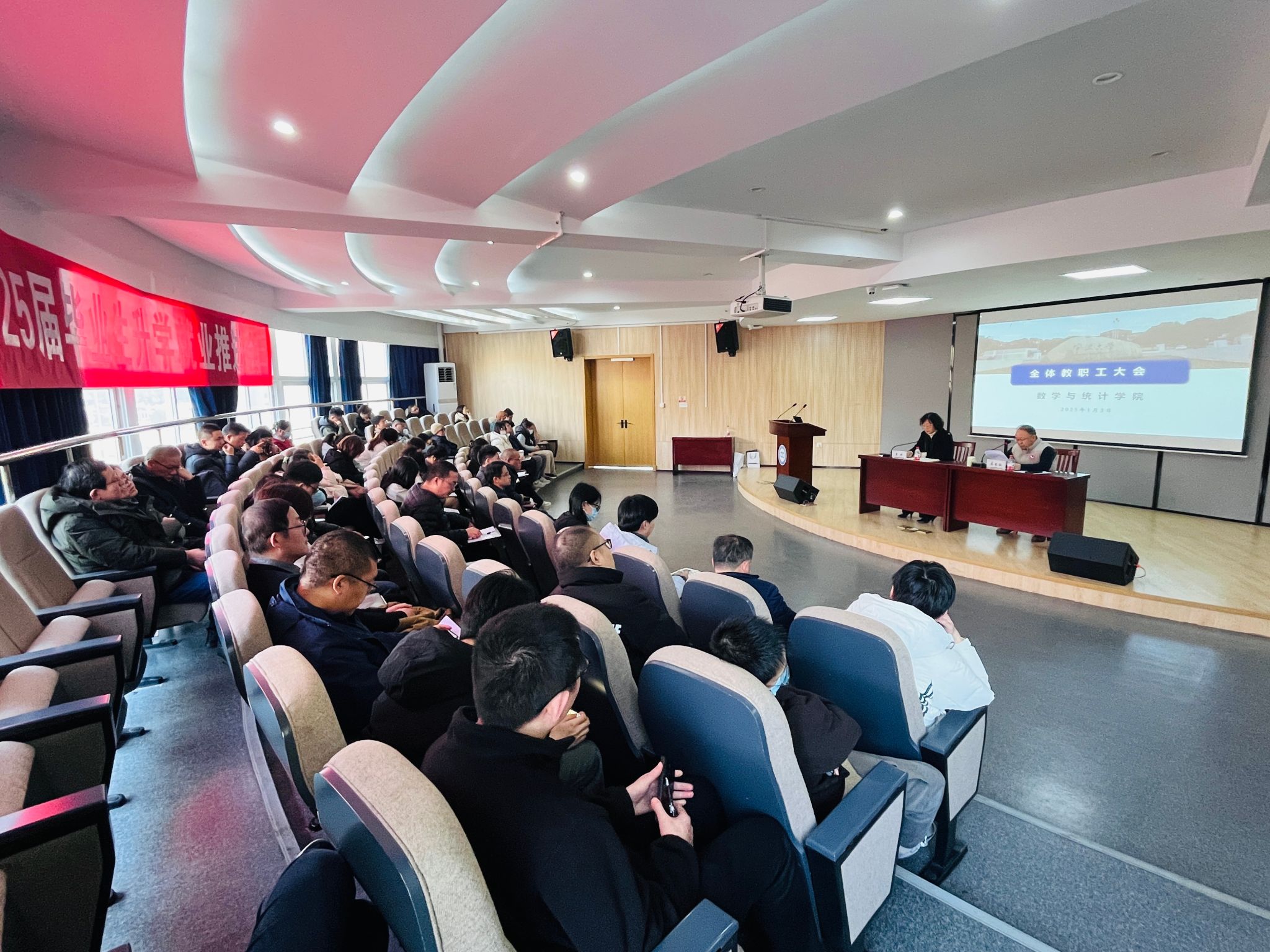 科研经费使用负面清单》,同时对2025年元旦春节期间正风肃纪工作进行了布置。教学副院长对专业认证评估、课程建设、教材建设、人才培养、教学成果奖申报进行了总计与计划,重点叮嘱全体教师规范教学教务工作。科研副院长、党委委员分别就科研、人事、研究生工作、学院创收等进行了总结与计划。最后,党委书记做总结发言,她就学院整体安全问题工作进行了强调,并号召众人拾柴火焰高,希望新的一年大家齐心协力打造更美好的数院。