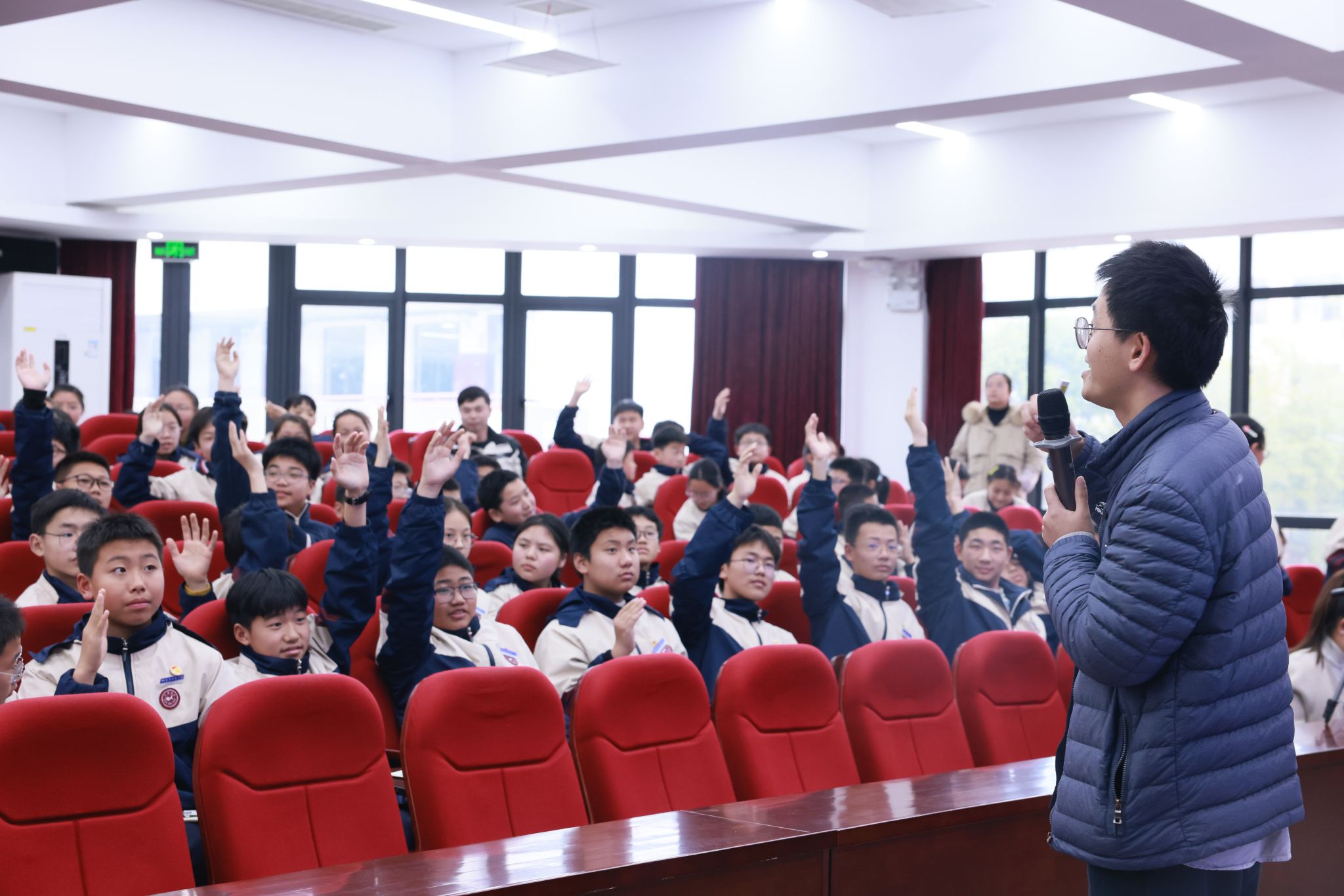党委书记霍妍、副院长徐松、古塘中学副校长陈敏出席活动,150余名初一学生参加。