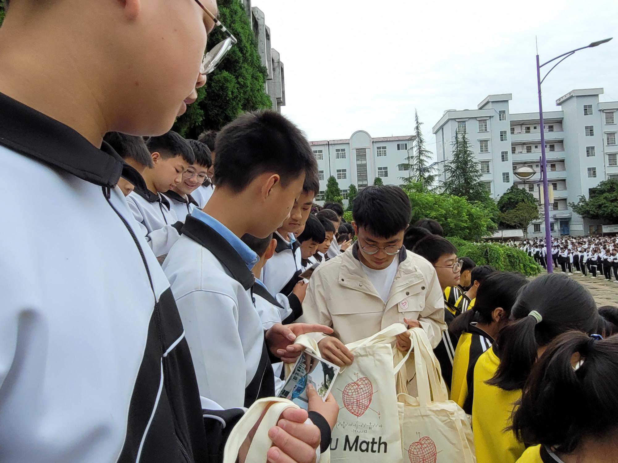 校友会成立的“数院赋能基金”特别赞助,校友会会长严正更是心系贵州的孩子们,特此捐赠了100个书包。一份份文具盒、一张张明信片、一个个书包,向孩子们传递着数院的温暖与期望,传递着“五四青年”对“六一儿童”的专属青春能量,相信这份温暖和力量,将在孩子们心中埋下爱的种子,在未来的日子中陪伴他们快乐成长。