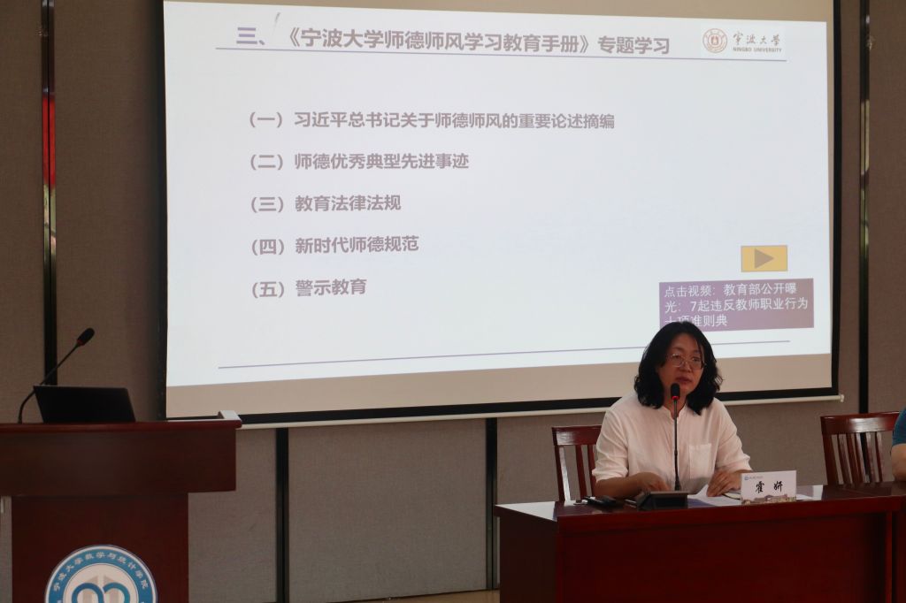 师德师风学习教育手册》,并组织大家集中观看了最新的《教育部公开曝光: 7起违反教师职业行为十项准则典》影片;此外,通报了学院党委2023年度民主生活会情况,强调了新学期安全稳定工作,进一步落实意识形态工作责任制,并就全省高校党建标杆院系建设工作进行了总动员。