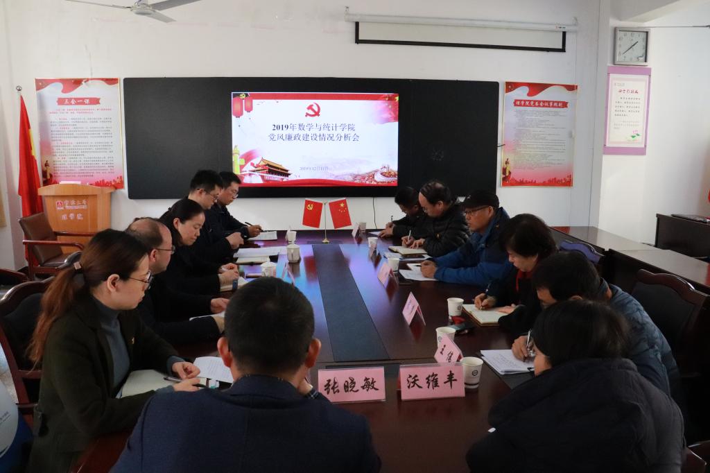召开2019年党风廉政建设情况分析会,院党委书记俞金波主持,全体党政班子成员、纪委班子成员和教师党支部书记参加,学校党委组织部部长胡敏出席。